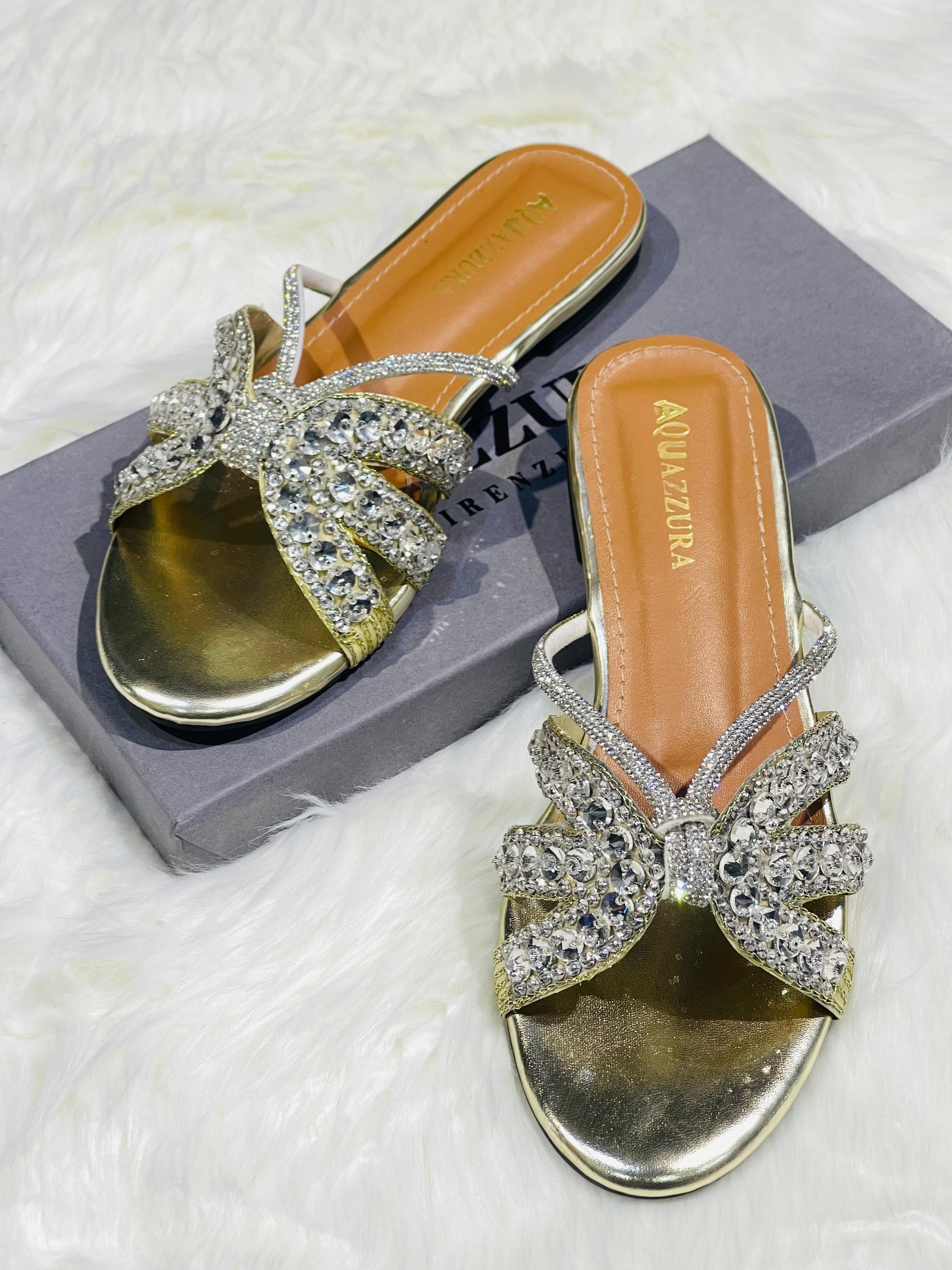 In khubsurat Crystal Embellished Flat Slippers ke saath apne style ko upgrade karein. Ye slippers na sirf dekhne mein premium hain, balki pehenne mein bhi nihayat comfortable hain. Inka unique "Crystal Bow" design inhe shaadiyon, parties aur festive occasions ke liye behtareen banata hai.
